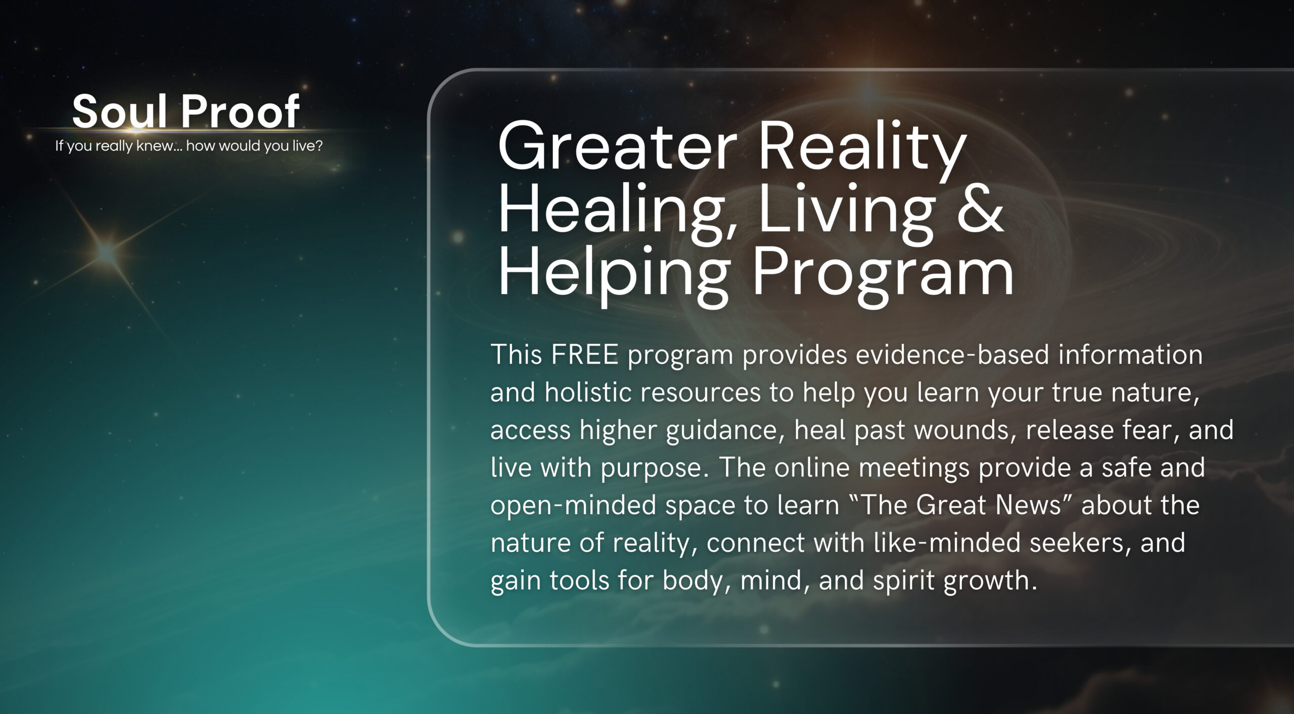 Sign up for free newsletters at SoulProof.com and SoulPhone.org to learn more. Note: Break-out groups will NOT be recorded so you can talk freely if you want. The presentation and Q & A portions will be recorded so others can watch and benefit. To preserve anonymity, you can block your video and not use your full name in your Zoom window.